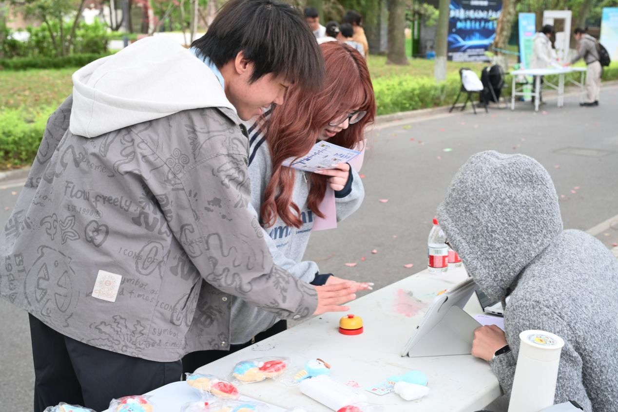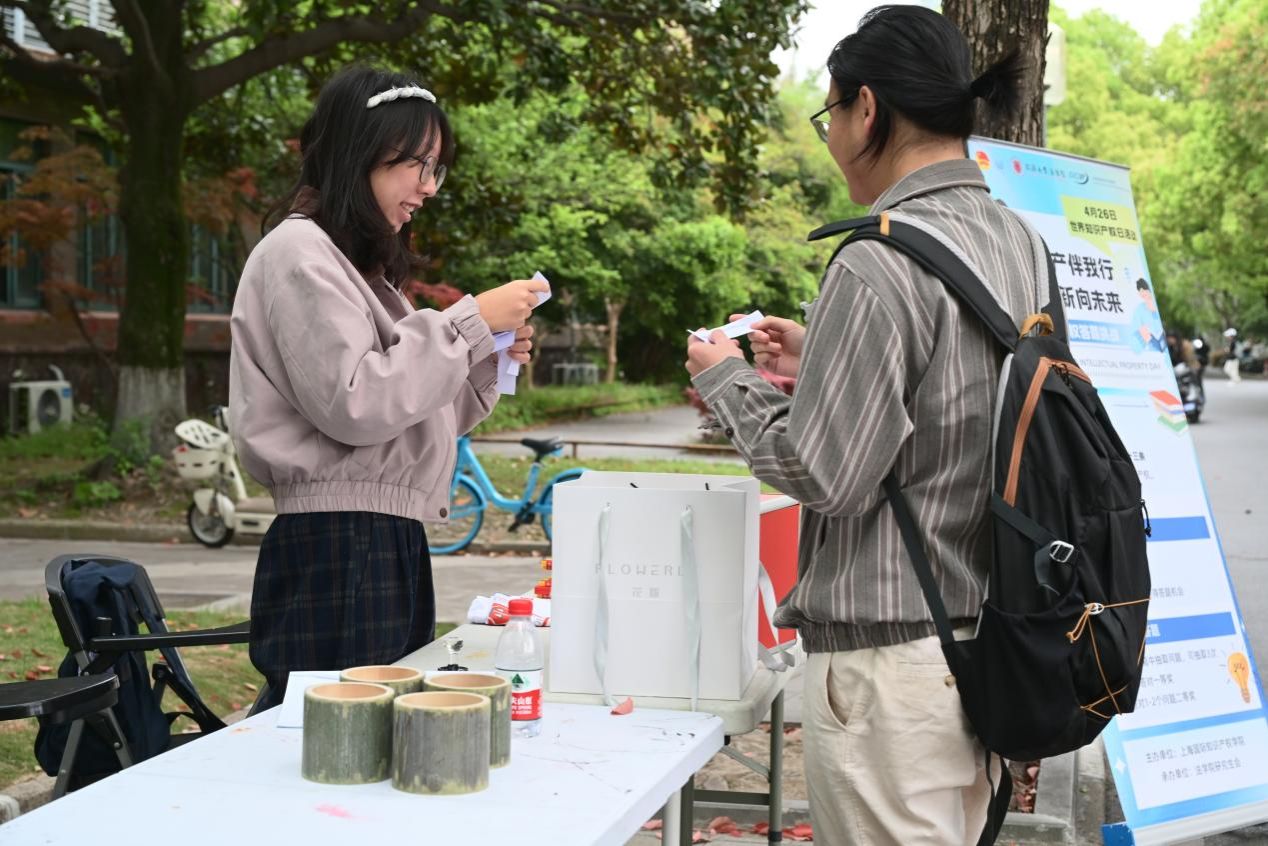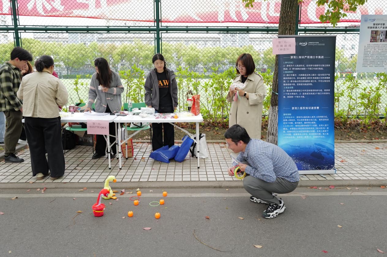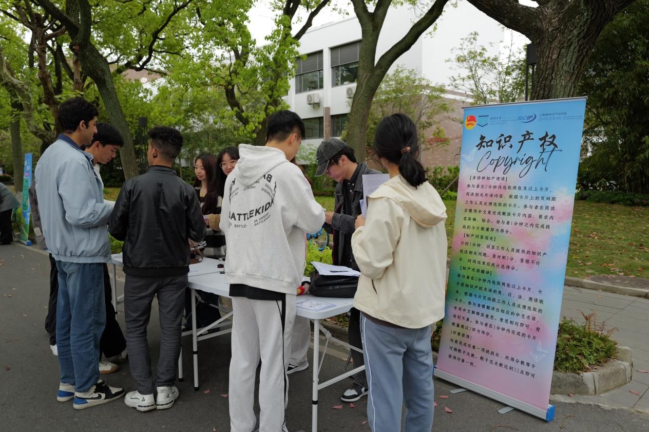 上海国际知识产权学院从专业知识出发,设置3个摊位,通过正版辨识、飞镖闯关、链珠DIY等形式让参与者直观识别侵权行为,筑牢版权与商标保护意识,读懂知识产权从研发到转化的全链条。