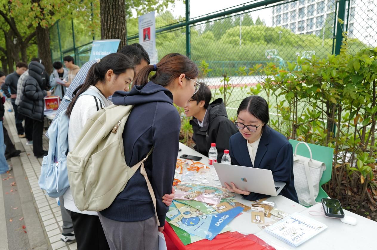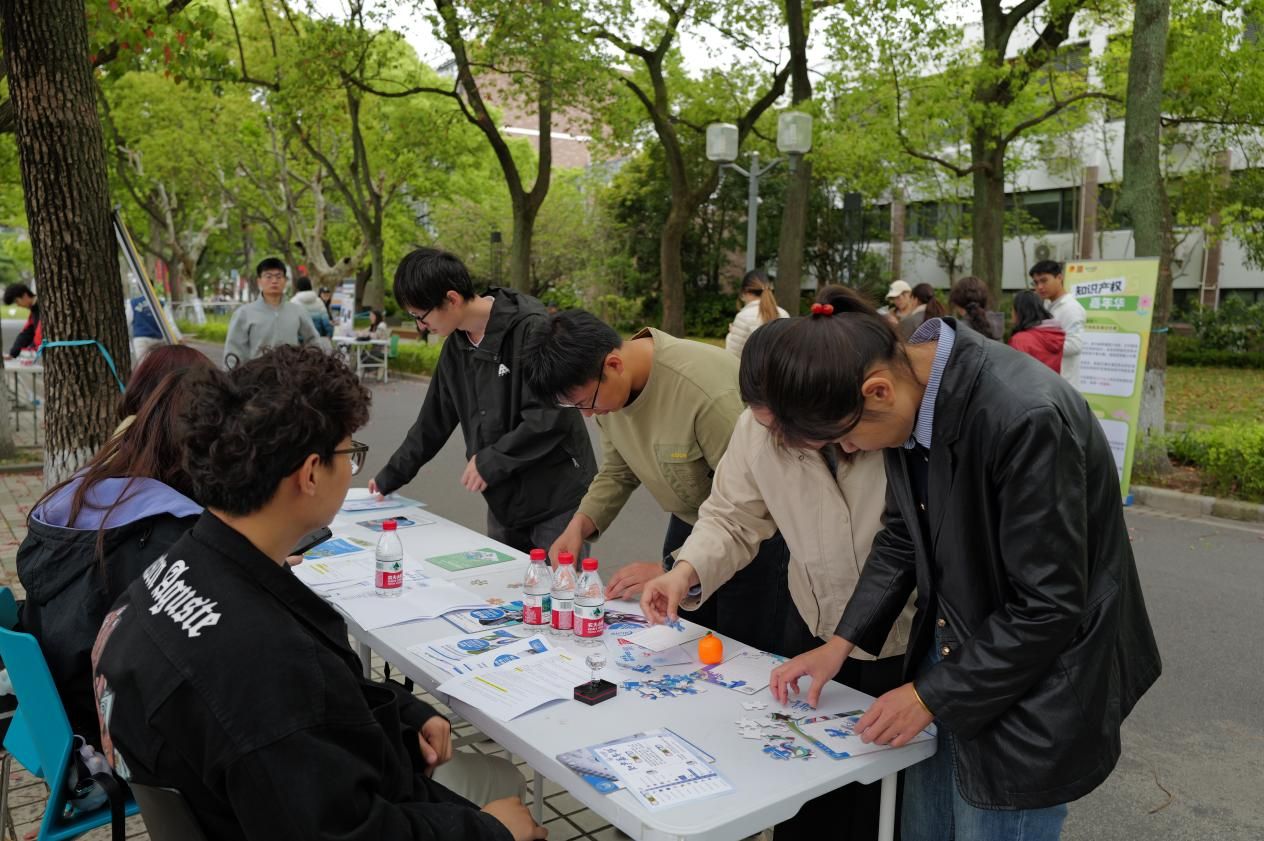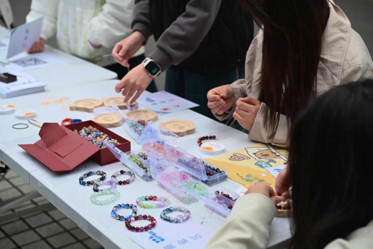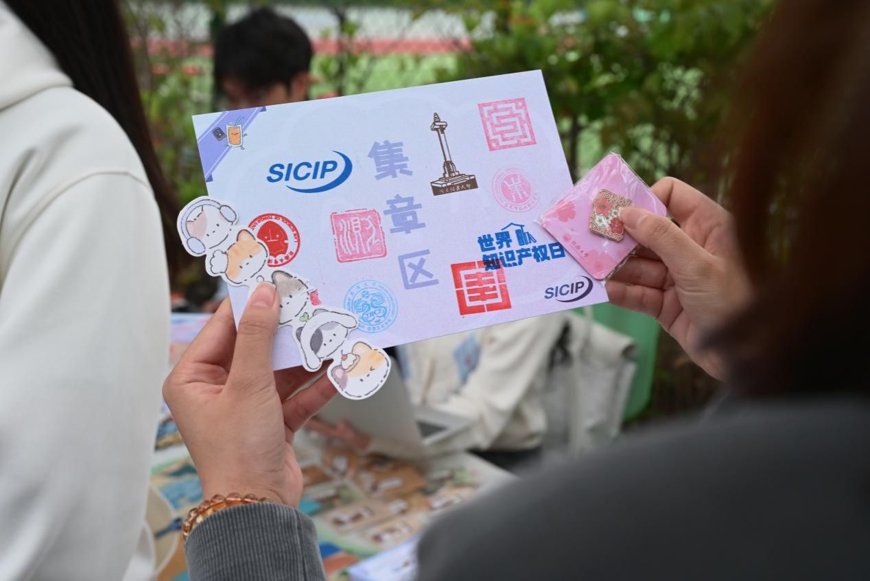 上海国际知识产权学院从专业知识出发,设置3个摊位,通过正版辨识、飞镖闯关、链珠DIY等形式让参与者直观识别侵权行为,筑牢版权与商标保护意识,读懂知识产权从研发到转化的全链条。