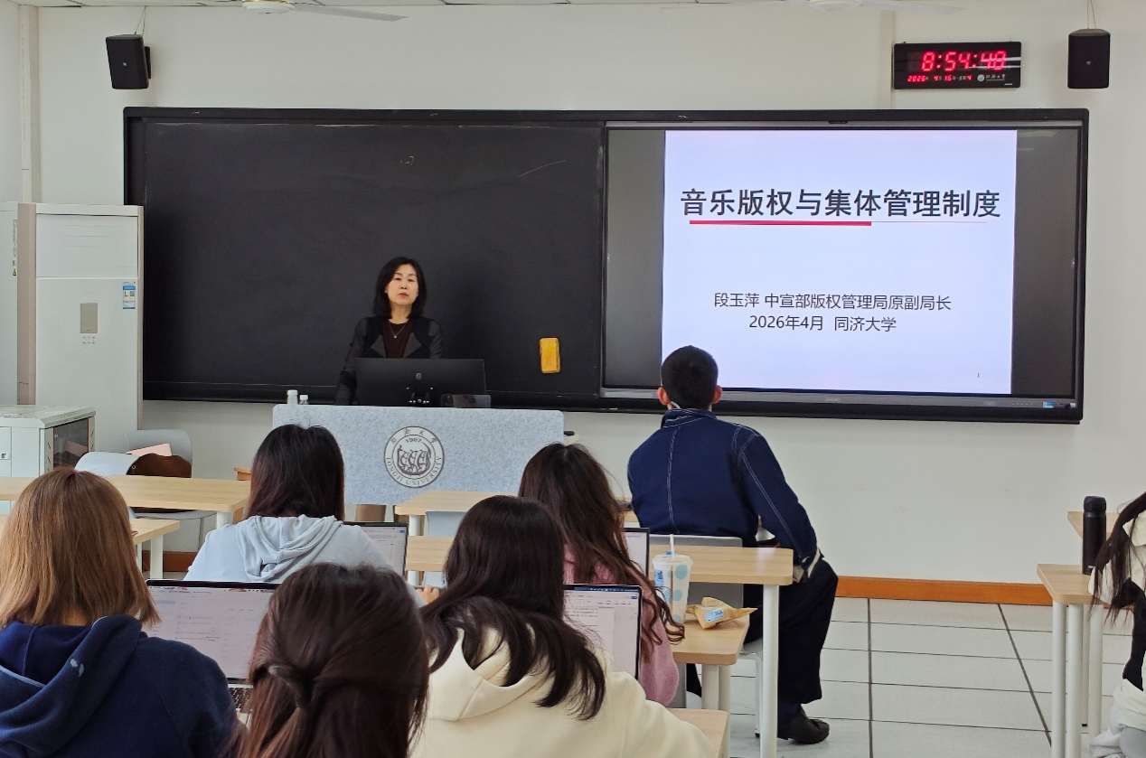 4月16日,中宣部版权管理局原副局长段玉萍到访上海国际知识产权学院,为首届知识产权专业硕士核心课程“版权与创意产业发展”授课并开展院级高等讲堂“音乐版权与集体管理制度”。